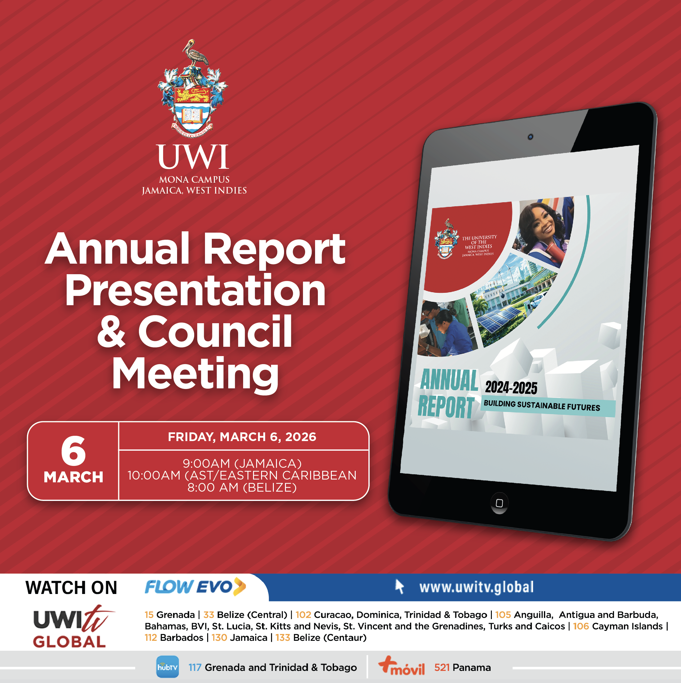 The University of the West Indies (The UWI), Mona Campus invites you to tune in to coverage of the public session of its Annual Campus Council Meeting which includes Pro Vice-Chancellor and Principal of The UWI Mona Campus, Professor Densil A. Williams, delivering the annual report on the 2024/2025 academic year.