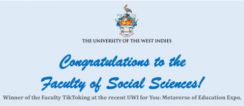 Faculty TikToking at UWI for You: Metaverse of Education" was the Faculty of Social Sciences. Collecting a token on behalf of the Faculty was Dr Heather Ricketts, Deputy Dean of the Faculty (centre). She is flanked by Dr Donovan Stanberry, The UWI Mona Campus Registrar (left) and Ms Stephanie Pinnock, Administrative Officer in the Faculty’s office (right).