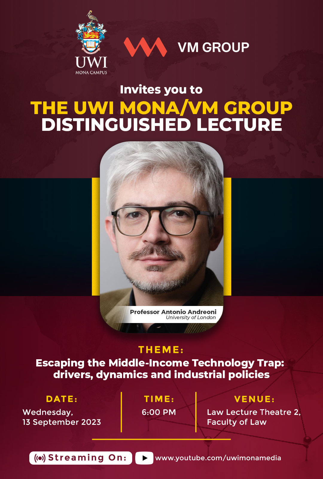 For more information on the Distinguished Lectures please click here: https://www.mona.uwi.edu/news/inaugural-staging-uwi-mona-vm-group-distinguished-lecture-address-middle-income-technology