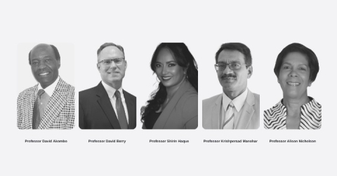 The Office of Administration at The University of the West Indies (The UWI) is pleased to announce the promotion of five academics to Professors, the highest academic rank at the institution. The newly appointed are Professor David Akombo in the field of music; Professor David Berry in the field of law; Professor Shirin Haque, the first at the University in the field of astronomy; Professor Krishpersad Manohar in the field of mechanical engineering and Professor Alison Merle Nicholson in the field of Medical Microbiology.